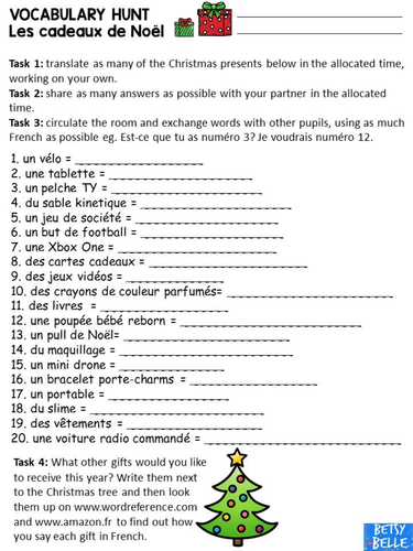 Cadeaux De Noel Vocabulary Hunt Teaching Resources